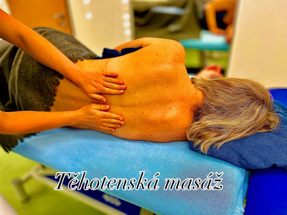 Těhotenská masáž je celotělová masáž, při níž využíváme speciálních jemných hmatů. Nastávající maminka během masáže zaujímá polohy v leže na boku, v sedě a na zádech s vypodložením hlavy, bříška a dolních končetin.